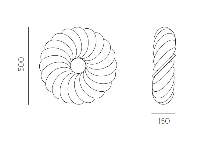 <p>Donut wall lamp is made from a light and thin ecoPET panel with a thickness of 5 mm, which is cut using an innovative laser technique. The cutting motif of concentric circles turns the material from recycled PET bottles into a three-dimensional sculptural object that takes on form and volume only upon wall installation. The interplay with LED light underlines the atmospheric and ambient effect of the Donut sconce because the emitted light is 360 degrees. In addition to this appealing effect, the project realizes an ecologically responsible approach, which is already evident in using sustainably manufactured ecoPET panels and LED as the light source. </p>