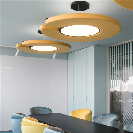 The Camira fabrics color range features 75 shades of Synergy woolen fabric. The fabric is made of the highest quality New Zealand wool and blended only with 5% polyamide. It is very soft, strong, has an impressive wear resistance, and in combination with other materials used in our luminaires, has excellent acoustic characteristics.