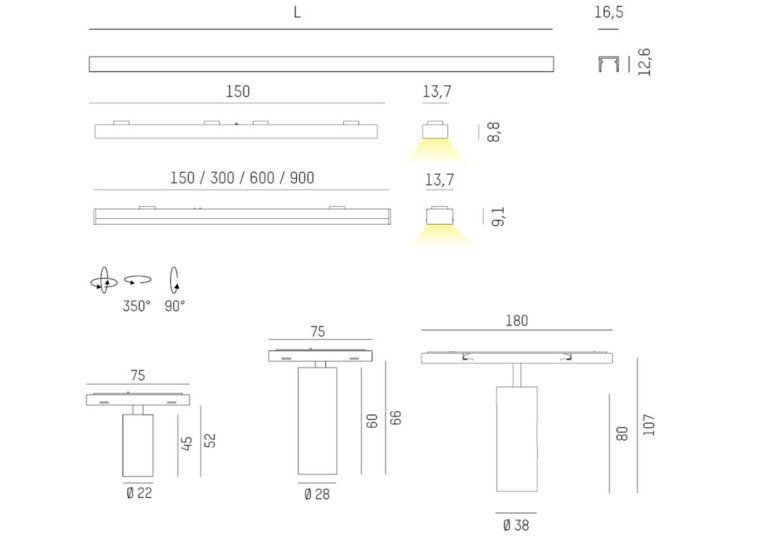 Move or simply adjust the spotlight head, the simple magnetic fixture ensures fast rearrangement of the components. On top of that, all luminaire inputs are protected against wrong polarity and can be easily inserted on both sides of the rail. Various light inserts of different lengths as well as spotlights in three sizes offer a linear basic lighting which is absolutely flush with the rail and sets accents. Draw attention to any object with a flick of the wrist.