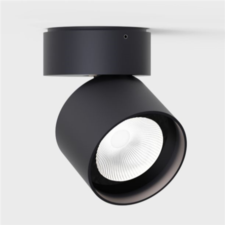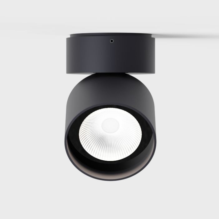 Classic design and versatile light. IP65 surface mounted luminaire, body in die cast aluminium with safely clear glass diffuser, 70° tiltable. Available in various colour selections.