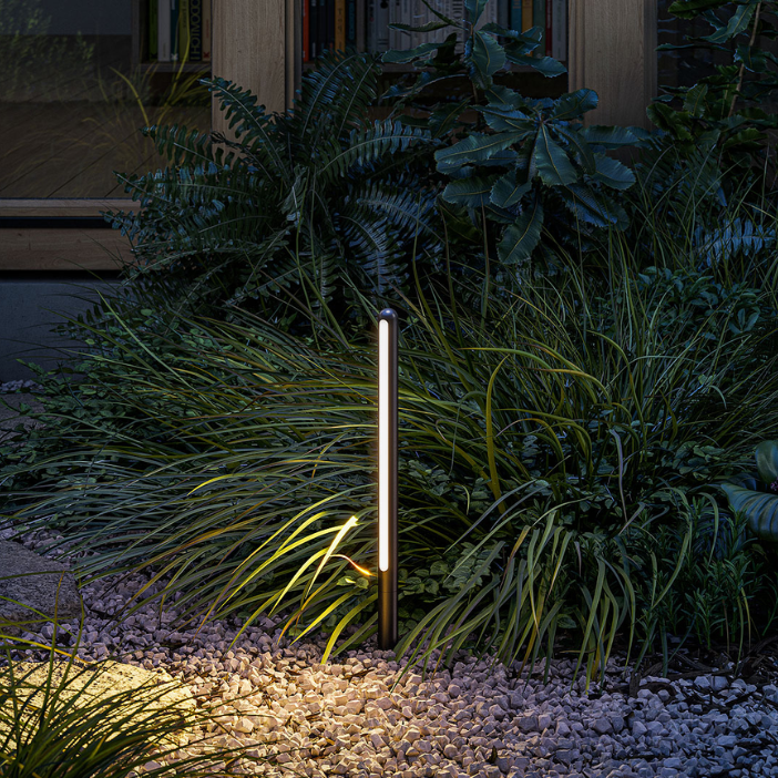A slim and minimal outdoor luminaire designed to blend seamlessly into natural surroundings. It provides subtle and precise illumination. Available in two heights, kal is ideal for highlighting plants and guiding paths. Choose between a standalone version or a connectable system depending on your installation needs.