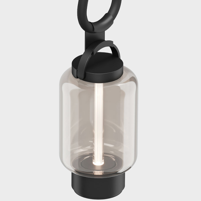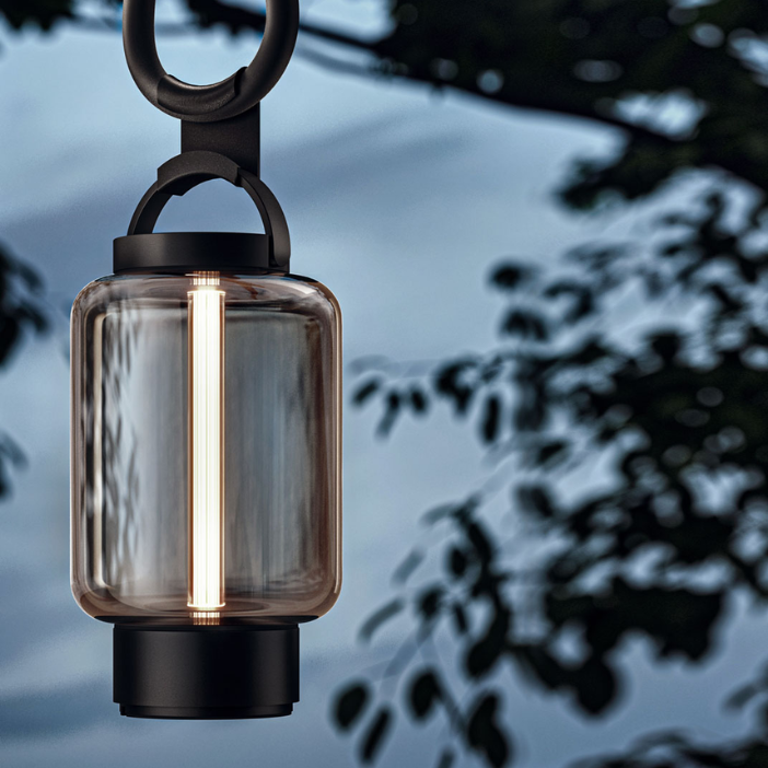 A portable and versatile lantern designed for both indoor and outdoor use, offering warm and atmospheric lighting. Paired with the qu rope, it can be easily hung from trees, pergolas, or ceilings, creating flexible lighting arrangements wherever needed. Available in multiple finishes.