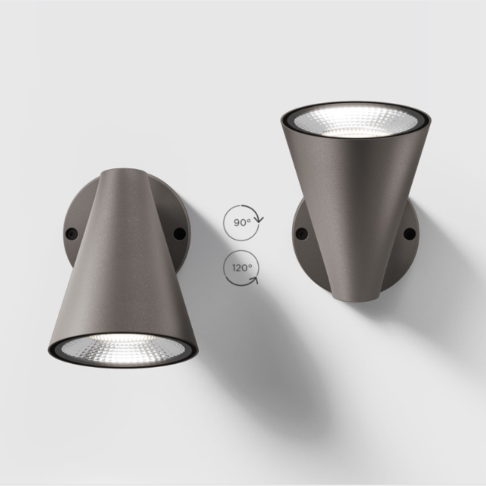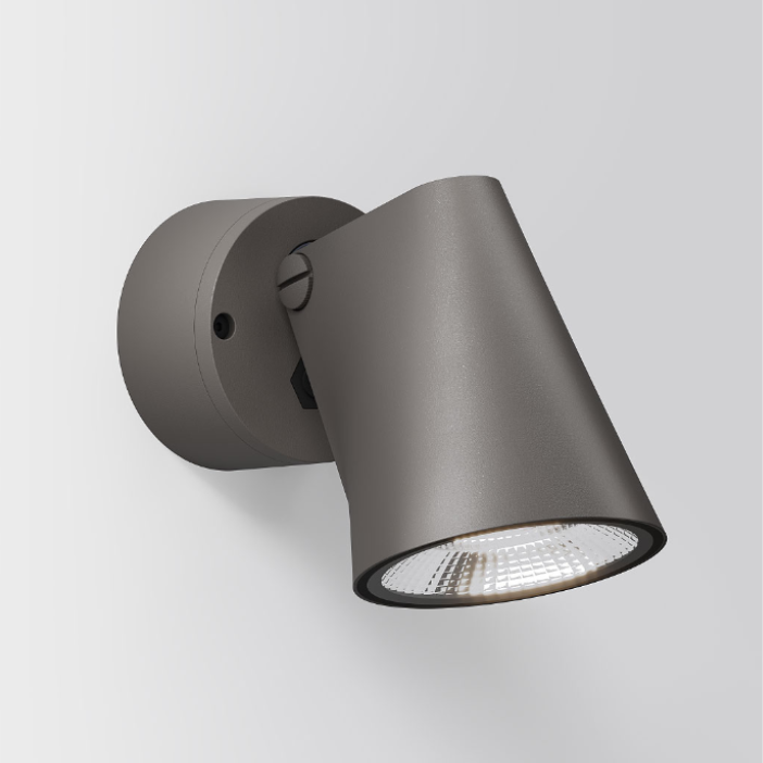 A versatile spotlight luminaire designed for outdoor use, featuring a clean form with an adjustable head. It can be rotated and swivelled to provide focused lighting exactly where needed. Available in multiple finishes.