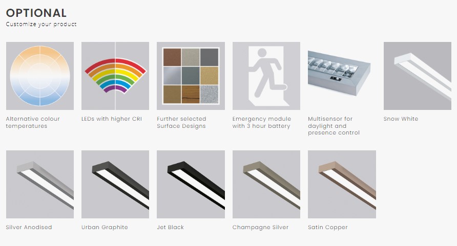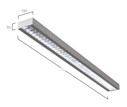 Proven efficiency. Surface mounted LED luminaire, body in extruded aluminium with 130mm width. Optic available in microprismatic screen, opal diffuser, wallwasher or satin louvre. Customize length available.