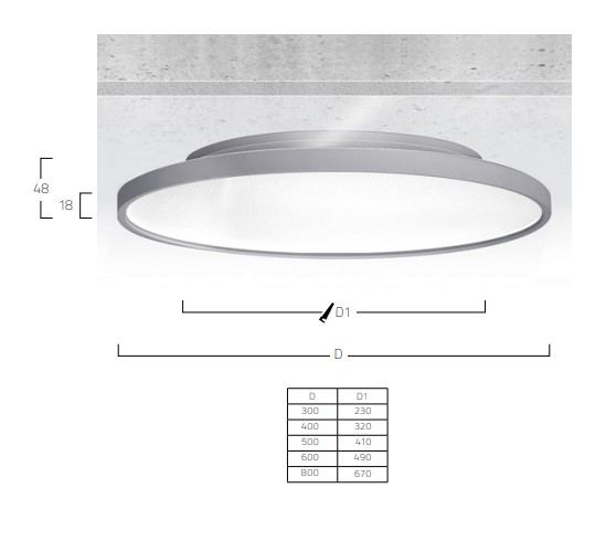 All rounder for consistent lighting architecture. Semi recessed round luminaire, visible surrounding frame with only 18mm height with various colour selections, microprismatic screen or opal diffuser.