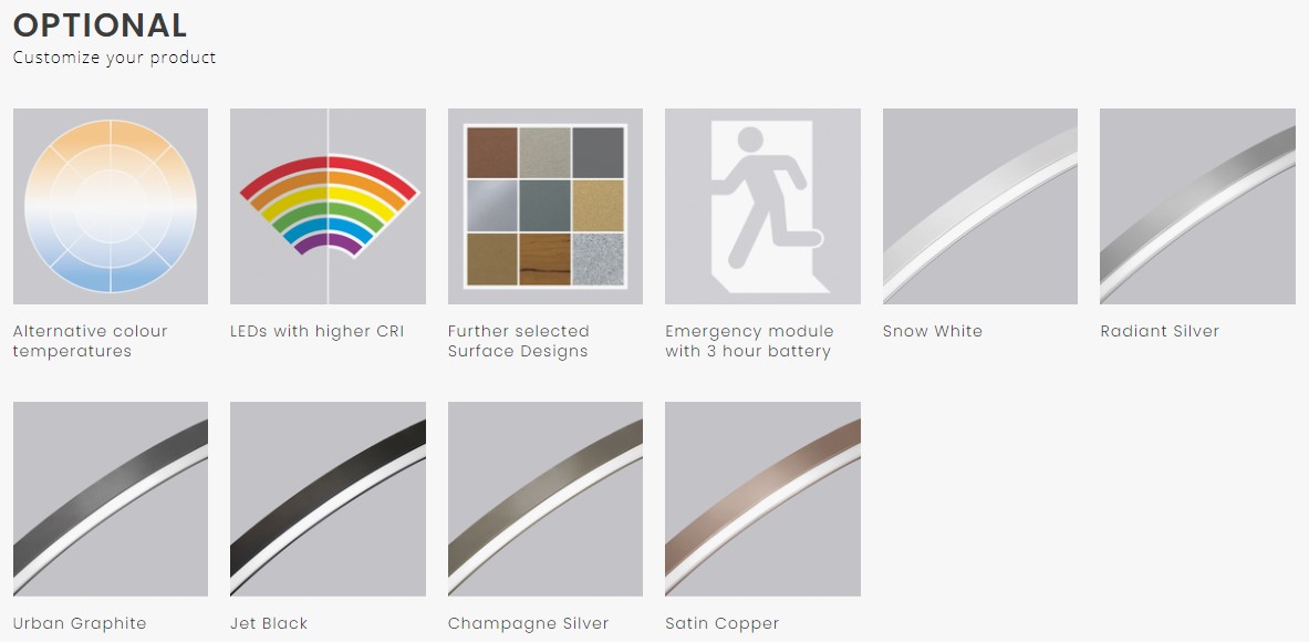 Infinite band of light. Recessed mounted round luminaire, body in aluminium profile with 100mm track width and various colour selections, microprismatic screen or opal diffuser. 13 different diameters from 600mm to 8000mm.