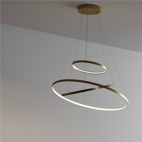 A family of lamps designed for important installations that give the possibility to “draw” shapes and describe sculptural volumes in freedom and with great lightness, simply by providing rings of light, rigid but ethereal. Rings of Rings are available in different diameters and each ring is independent and it is possible to create compo - sitions of any shape and size.