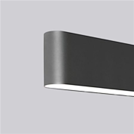 Rectilinearity with soft contours. Wall mounted direct/indirect LED luminaire, body in aluminum housing various colour selections with microprismatic screen or opal diffuser.