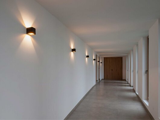 Wall mounted luminaire made of aluminium, powder coated or painted in various colour selection. Light output direct & indirect.